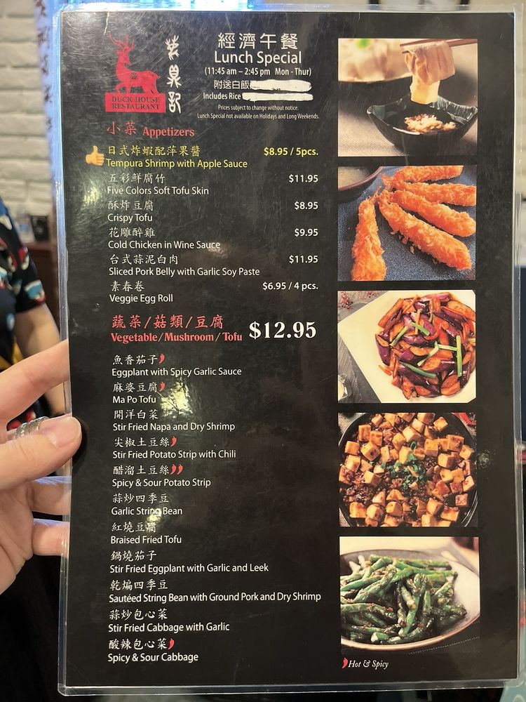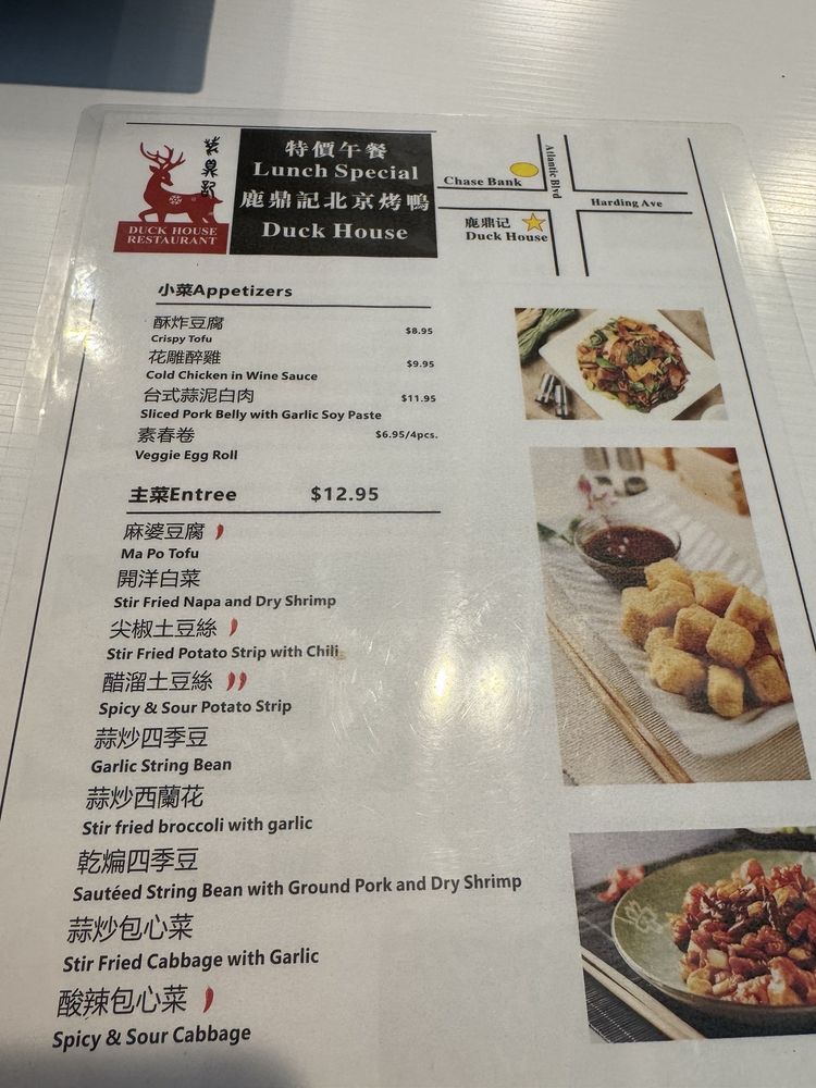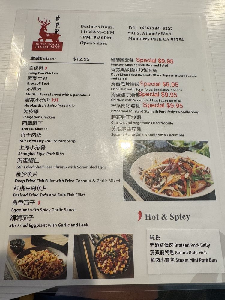 Duck House Restaurant, located in Monterey Park, CA, offers an extensive menu with a variety of delicious options. Specializing in Peking duck, their crispy duck skin and tender meat garner rave reviews. The Edible Birds Nest Soup with Abalone is a luxurious treat for seafood lovers. Customers praise the delicate thin pancakes served with the duck. The restaurant also offers lunch entree specials and set menus for large groups. With options for vegan and vegetarian diners, ample parking, and a full bar, Duck House Restaurant caters to diverse tastes and preferences. The ambiance is classy and cultural, enhancing the dining experience. Come for the duck, stay for the flavorful dishes that will leave you feeling like you've hit the food jackpot.